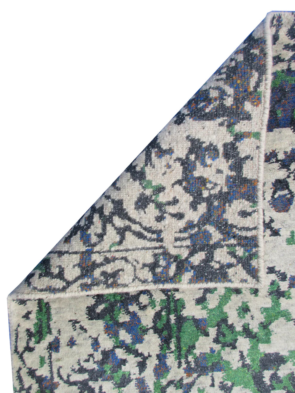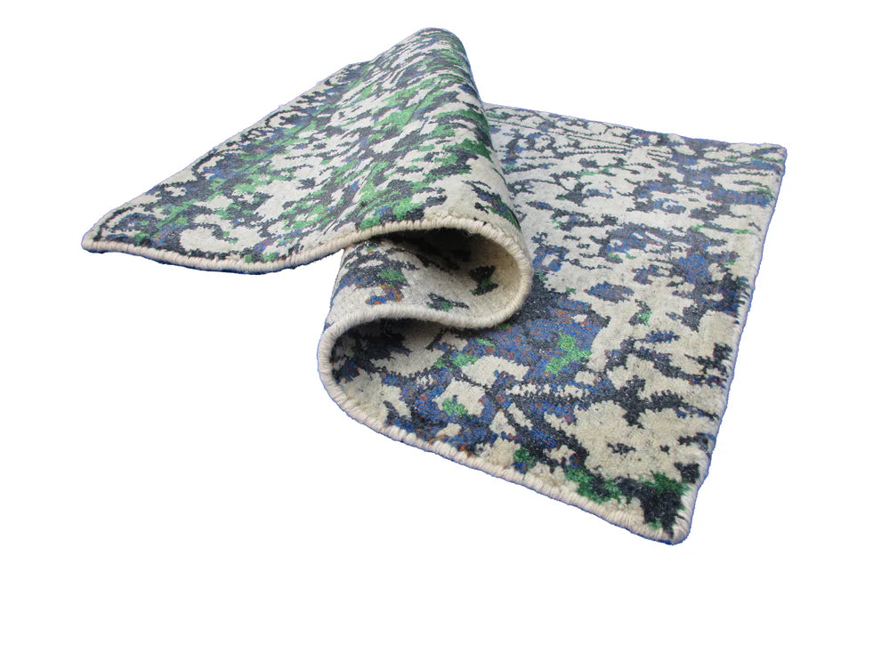 Add a bold statement to your space with this 3x2 ft Handmade wool abstract rug, featuring vibrant colours and a dynamic design. This rug is 100% hand-knotted by expert artisans from the village, ensuring that it is not machine-made. It is a stunning, eye-catching piece of floor art that will elevate the beauty of your living space. The intricate design, vibrant colour concept, high-quality materials, and traditional hand-weaving process combine to create a décor element that you'll cherish every time you see it.